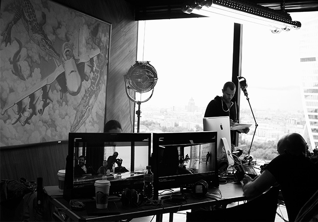 Московский этап съемок проходит в активном режиме. Работа не прекращается даже в выходные, в один из которых мы и подсмотрели за процессом создания "Дyxless-2". Съемки проходили в одной из башен "Москва-Сити". Чтобы превратить офис в пригодное для работы команды ленты пространство, понадобились усилия десятка техников, а также гримеров, костюмера и, конечно, режиссеров с его помощником (точнее, помощницей).