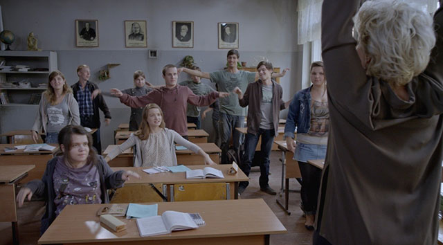 Лена, главная героиня фильма, — инвалид-колясочник. Спустя годы обучения на дому девушка наконец попадает в школу, в коррекционный класс. Учебное заведение "выписано" в лучших традициях критического реализма: класс для детей с проблемами в развитии находится на верхнем этаже — как же иначе, учителя — равнодушные дамы бальзаковского и постбальзаковского возраста. "Дверь не сломайте своей коляской!" — здесь оклик учительницы по математике звучит уместно и органично. Образовательный процесс ("Сколько будет 25 – 5?") протекает под кафкианским лозунгом: "Учиться надо для того, чтобы получать хорошие отметки". Героиню, девушку умную и воспитанную, становится жалко с первых минут. Одно утешение: ребята из коррекционного класса добродушно принимают новенькую в свою компанию. Быть может, режиссер сентиментально намекает, что только инаковость помогает остаться человеком в неприглядных пасмурно-серых реалиях? Как бы не так.