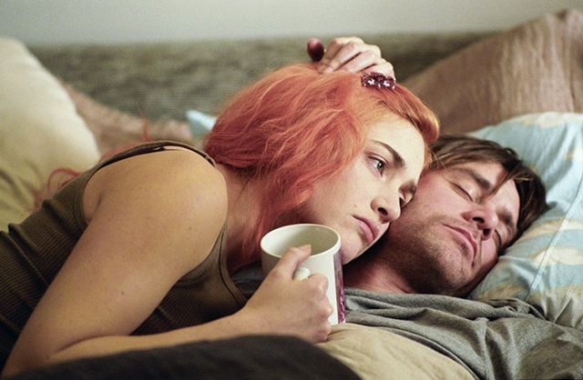 Синеволосая Клементина крутит роман с мечтательным Джоэлом (Джим Керри), который оказывается большим любителем поговорить сам с собой. Джоэл случайно сталкивается с Клементиной в поезде, а затем и на пляже, на который он отправился совсем для себя неожиданно, — и вот он уже у нее в квартире. На самом деле в фильме Мишеля Гондри, поставленном по сценарию Чарли Кауфмана, все далеко не так просто. Клементина и Джоэл знакомы давно, и роман между ними уже имел место быть, только то один, то другой этого не помнит — за это отвечает «Лакуна» — фирма, готовая в любой удобный для клиента момент стереть все ненужные ему воспоминания. Почему мысли о Джоэле рыжеволосой тогда еще Клементине показались лишними, сюжет рассказывает не сразу, вовлекая зрителя в водоворот воспоминаний, переживаний и лазеек, заготовленных разумом для того, чтобы помнить, но не забыть.