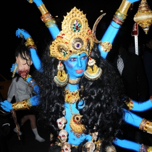 Рэперша тоже не ограничилась одним костюмом: первым делом она перевоплотилась в Медузу Горгону, а потом в Алую Ведьму. Ее дочь Калчер решила стать Чудо-женщиной.