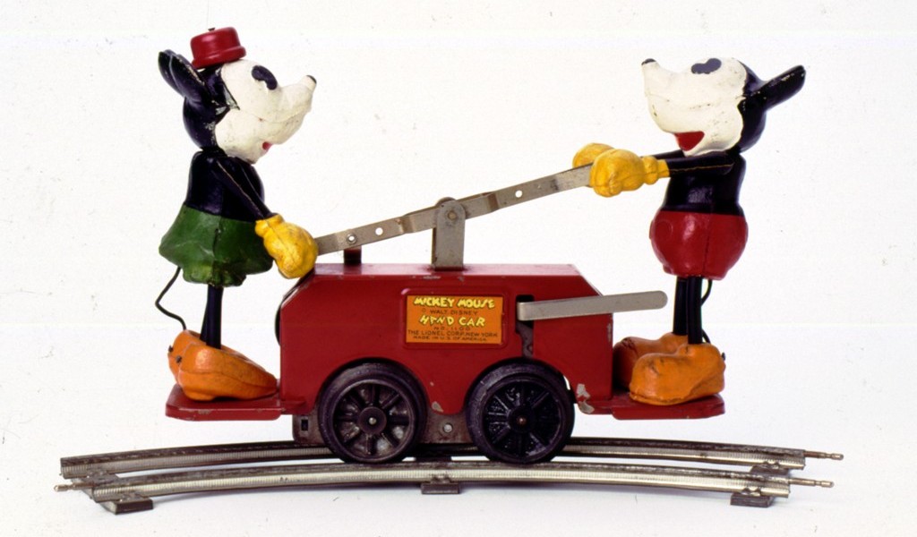 Однажды мышонок спас от разорения компанию-лицензиата. С трудом переживая последствия биржевого краха, производитель игрушечных поездов и моделей железных дорог Lionel Corp объявил себя банкротом. Во время слушания дела судья разрешил произвести последнюю партию игрушек для ближайшего рождественского сезона. Ставку сделали на тележки с Микки, и доход от продажи игрушек позволил Lionel Corp продолжить жить.