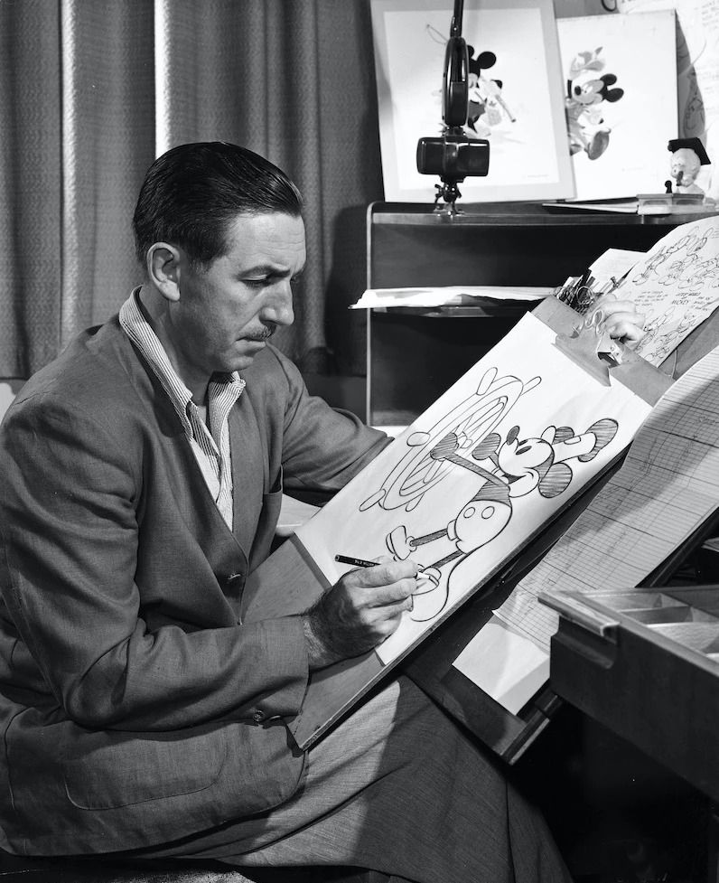 Студия Disney была основана в 1923 году — в эпоху ревущих двадцатых. В США в это время происходил бум, развивалась индустрия развлечений, в первую очередь благодаря кинематографу и мультипликации. Технологии совершенствовались, позволяя «важнейшему из искусств» переходить в разряд массового досуга. В Лос-Анджелесе Дисней создал технику послойного рисования, которая значительно уменьшила трудоемкость работы над мультфильмами. Больше не нужно было корпеть над каждым кадром в отдельности и рисовать его с нуля — можно было одновременно использовать разные слои с фонами и неподвижными элементами, а дорисовывать только необходимые детали.