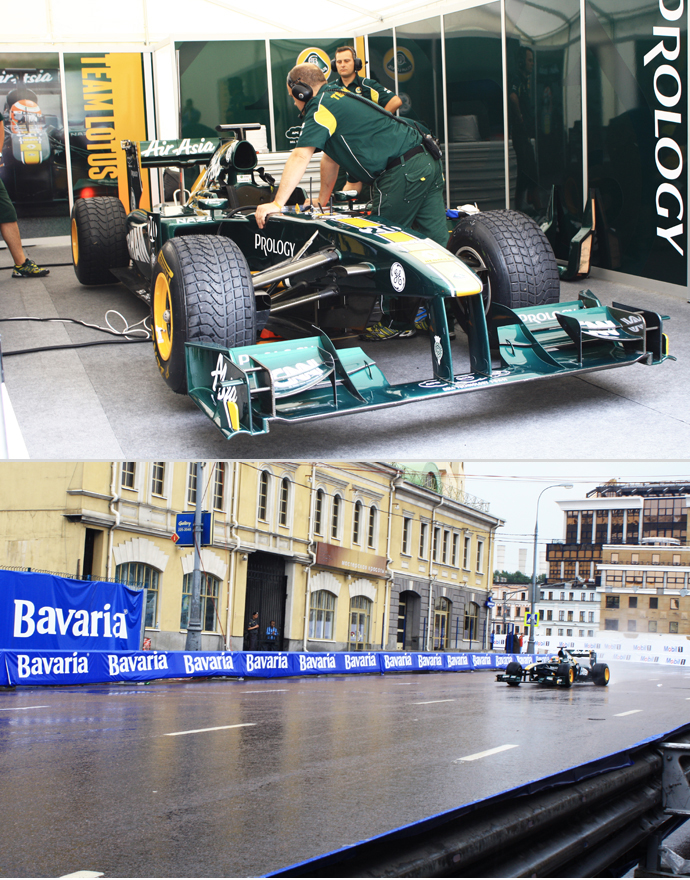 Помимо Дженсона Баттона, выступающего за "McLaren", по московской трассе сегодня проехали болиды команд "Ferrari" и "Lotus", а также грузовики раллийной команды "Камаз-мастер". Автомобильное великолепие, кажется, оценили не только многочисленные гости шоу Moscow City Rasing, но и сама природа, сменившая к середине дня гнев на милость, а именно ливень на солнце.