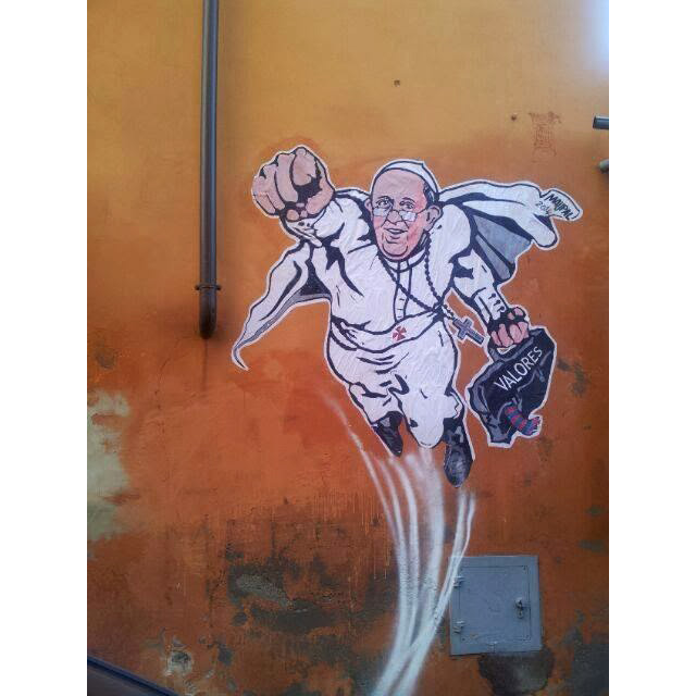 Что до медийного успеха Папы Франциска, то сегодня СМИ обратили внимание еще и на официальный аккаунт Ватикана в Twitter, где было опубликовано забавное фото: граффити, на котором глава католической церкви изображен в виде супергероя.