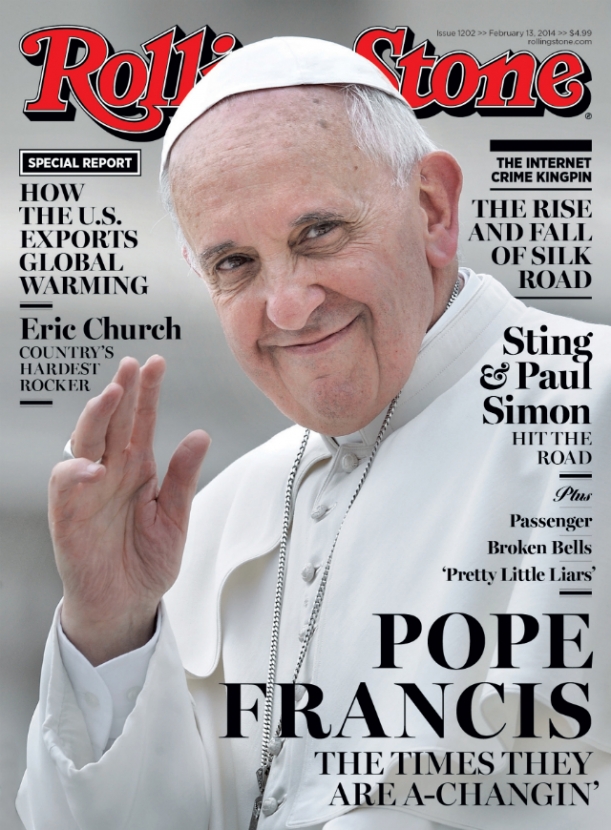 Музыкальное издание мотивировало столь необычный выбор героя для обложки тем, что нынешний Папа Римский "меняет традиции Ватикана". Заголовок под фото Франциска соответствует заданной теме: "The times they are a-changin'" ("Времена меняются"). Цитата взята из песни Боба Дилана.