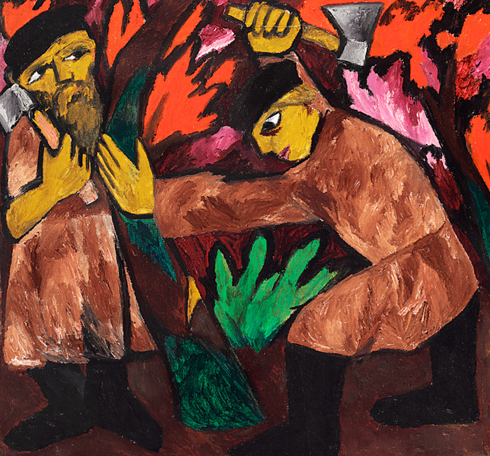 Картину "Лесорубы" Натальи Гончаровой эксперты оценивают в сумму от $6 до 8 млн. По словам организаторов торгов, эта работа отличается превосходной выставочной историей и исключительным провенансом. С момента создания она находилась в коллекции художников, участвовала в первой выставке художественного объединения "Ослиный хвост"(1912) и в персональной выставке Натальи Гончаровой, проходившей в московском Художественном салоне на Большой Дмитровке в 1913 году, а также выставлялась в галерее Бейелер в Базеле в 1961-м. После смерти художников картина передавалась по наследству, а также некоторое время находилась в коллекции галереи Бейелер. В этом году ее можно заполучить в собственное собрание искусства: работа "Лесорубы" будет доступна для покупки на нью-йоркских торгах аукционного дома Christie's 4-5 ноября.
