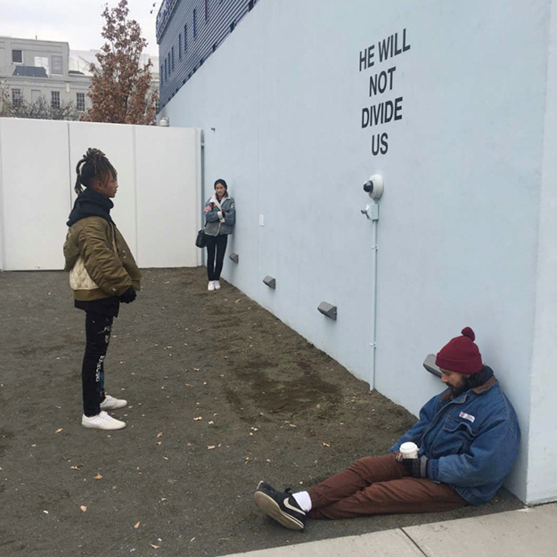 Перманентная арт-инсталляция расположена перед Музеем движущегося изображения в Нью-Йорке. Она представляет собой камеру с надписью «Ему нас не разделить». Желающие участвовать в протесте могут подойти к камере и произнести эту фразу на видео. Подкаст в режиме live будет транслироваться на сайте hewillnotdivide.us.
