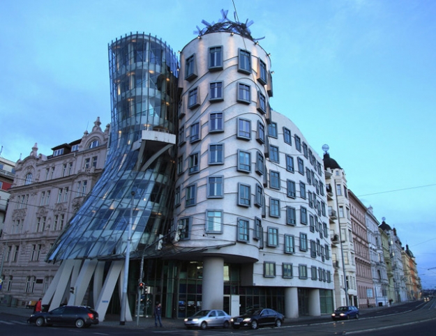 "Танцующий дом" по проекту архитекторов Фрэнка Гери и Владо Милунича — одна из главных достопримечательностей Праги. Этот торгово-офисный комплекс был построен в центре города, на набережной реки Влтавы, в 1994-1996 годах. С тех пор "танцующий дом" знаменит как одно из лучших зданий в стиле деконструктивизма: его составляют две башни, нормальной и деструктивной формы, одна из них напоминает мужскую фигуру, другая — женскую.