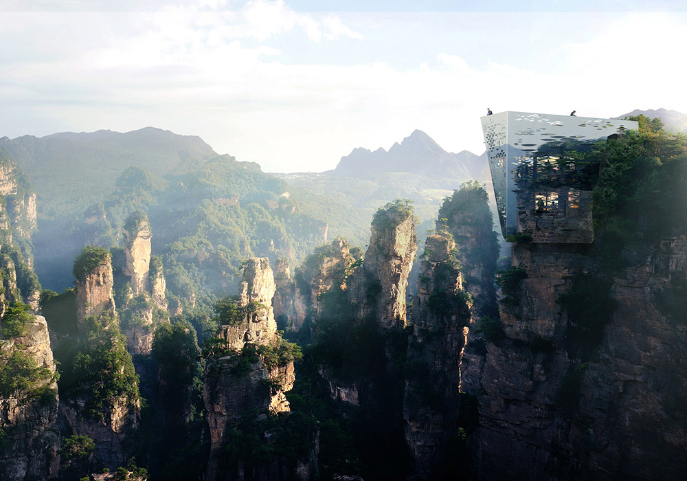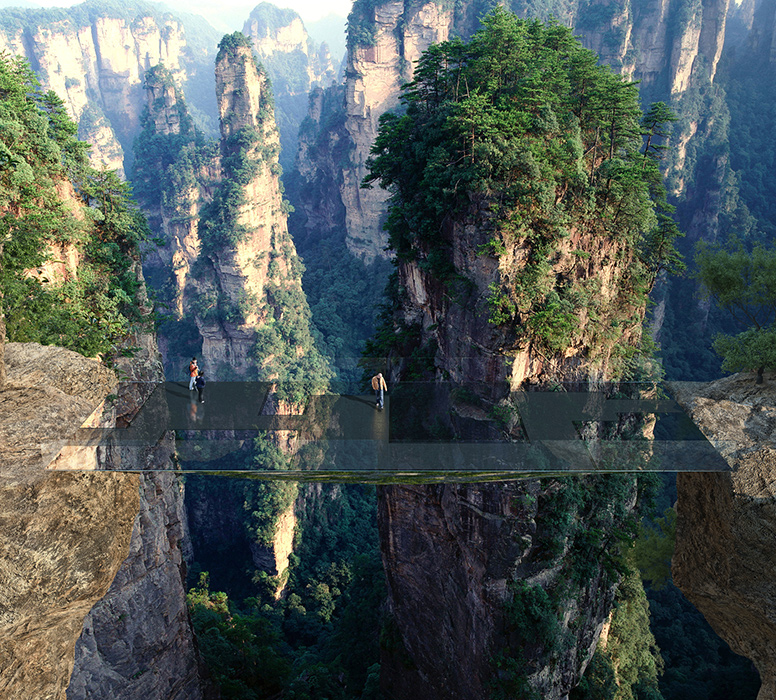 Французское архитектурное бюро Martin Duplantier Architectes представило проект мостов и тоннелей для нового туристического маршрута в западной части гор Улинъюань в Китае. Как будет выглядеть первый из объектов, — мост Water Mirror в форме эллипса, установленный между двумя скалами, — можно увидеть уже сейчас. Выполненный из стекла и зеркальных панелей из нержавеющей стали, мост практически сливается с окружающим пейзажем.