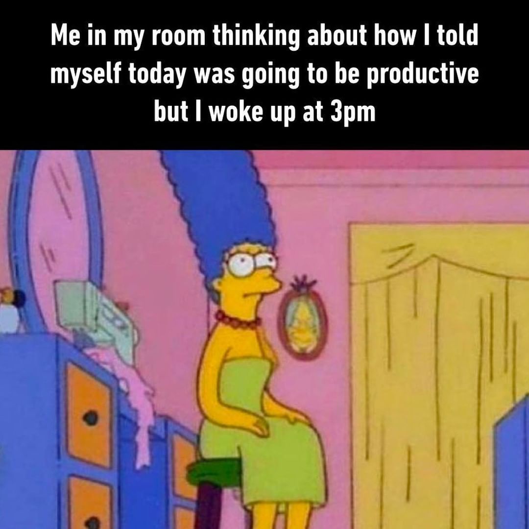 Я в своей комнате думаю, как говорил себе, что буду продуктивным, но проснулся в 3 часа дня
