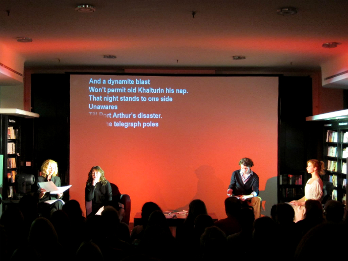 В крупнейшем лондонском книжном Waterstones на Piccadilly в минувшую среду прозвучали стихи Иосифа Бродского, Анны Ахматовой, Бориса Пастернака, Марины Цветаевой, Веры Полозковой и Дмитрия Быкова. Их прочли актеры "Практики" и "Политеатра": Алиса Гребенщикова, Павел Артемьев, Ирина Михайловская, Вера Полозкова. Первый этаж был переполнен любителями русской словесности — актеры читали на языке оригинала, а английский текст проецировался на стены. Перфоманс, поставленный Русланом Маликовым и Эдуардом Бояковым, состоял из четырех частей: "Поэт и власть: всегда соперники", "Поэт и Бог: пути неисповедимы", "Евангелие от поэтов", "Поэты о поэтах: воздушные пути".