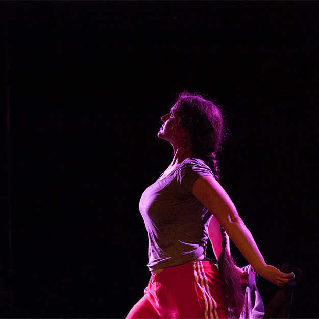 После вступления, обязательно вызывающего у аудитории смех, такой текст, да еще и в исповедальной интонации, должен настраивать на вдумчивый лад, и он, конечно, настраивает. А потом играет перкуссионная музыка и прожекторы мягко высвечивают Марусю в красных трениках и серой майке, полулежащую, расставив согнутые в коленях ноги, лицом к зрителям. Музыка играет комедийно долго, а потом вдруг обрывается, и Маруся говорит, что она Маруся и она совершенно не умеет танцевать contemporary dance, а затем целый час доказывает, что это не так уж и важно.