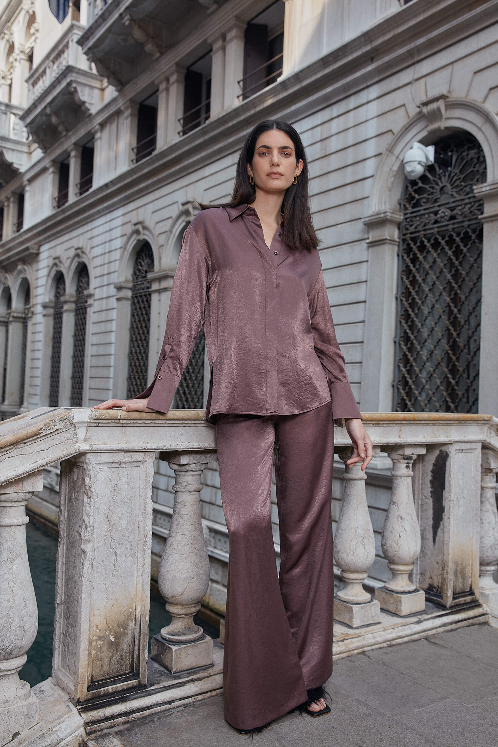 Олеся Шиповская: Мы хотели максимально интегрировать ДНК бренда, поэтому сначала обратились к классическим моделям из нашей базовой коллекции — это комбинации и костюмы. При этом мы подробно изучили запросы клиентки Zarina — поэкспериментировали с более расслабленным кроем, отсюда и «пижамные» костюмы, в которых можно выйти за кофе и выглядеть шикарно, а можно, например, надеть на вечеринку.