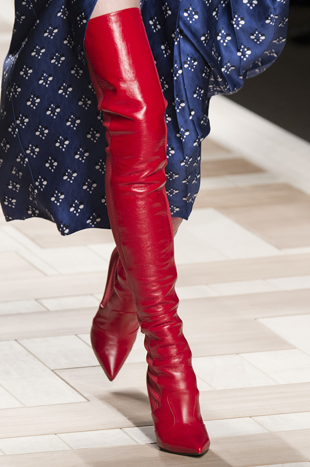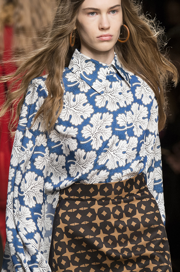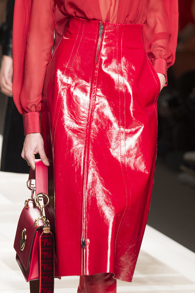 Летящие миди-платья с широкими рукавами и V-образным вырезом, расклешенные кожаные и шерстяные юбки, шелковые блузы, легкие полушубки и шерстяные пальто с меховыми оторочками — Карл Лагерфельд и Сильвия Вентурини-Фенди показали красивую люксовую одежду, ориентируясь на традиционные для марки ткани и материалы и дорогой шик. Цветовая гамма новой коллекции максимально сдержанная: даже красные кожаные ботфорты не выбиваются из общего цветового потока, дополняя белый, коричневый и черный.