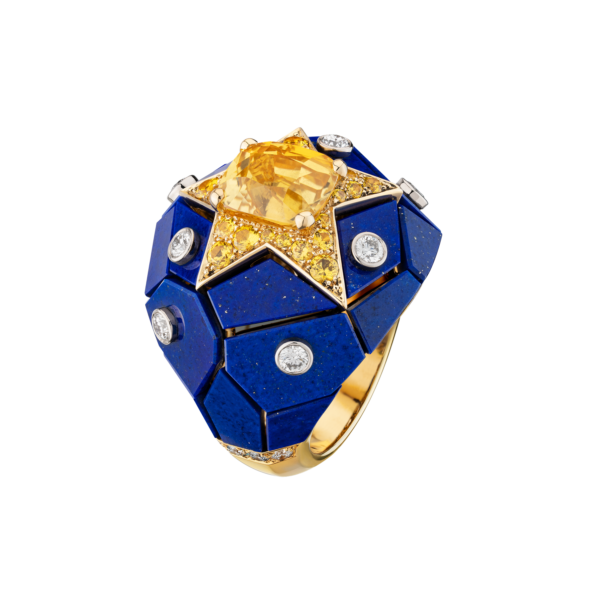 В сотуаре из трех нитей бусины из красной шпинели и лазурита скреплены двумя фигурами львов с гривами из желтых сапфиров. Мотив продолжает браслет, украшенный барочным медальоном со львами. Крылатый лев на фоне звездного неба с фасада базилики Сан-Марко у ювелиров Chanel появляется в сете Constellation Astrale. Мозаика из лазурита изображает ночное небо, усыпанное звездами, самая яркая из которых — желтый сапфир.