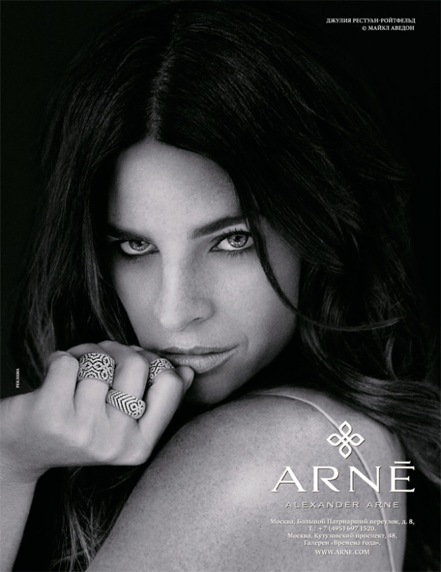 По-настоящему звездную рекламную кампанию развернул известный ювелирный дом Alexander Arne. Главной героиней монохромной истории стала Джулия Рестуан-Ройтфельд, а авторство снимков принадлежит внуку культового американского фотографа Ричарда Аведона, Майклу Аведону. Фотосессия прошла в Нью-Йорке, а сама кампания представлена в любимом формате фотографа — черно-белых цветах.