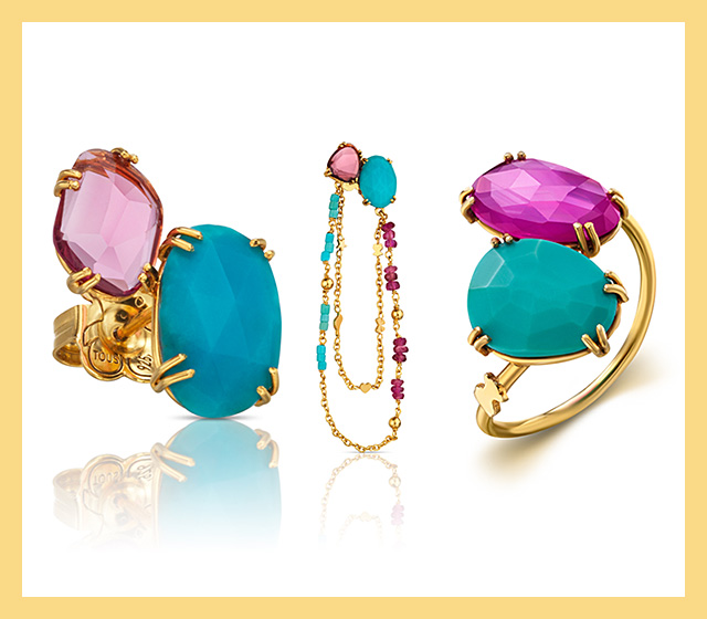 Сами украшения выполнены в ярко выраженной эстетике ар-деко, которая предполагает смелые сочетания различных материалов, оттенков и форм. В летнем «меню» у Tous — розовый кварц, бирюза и перламутр в сочетании с позолоченным серебром, а также бриллианты, шпинели и турмалины. С украшениями из новой коллекции вы точно не останетесь без внимания!