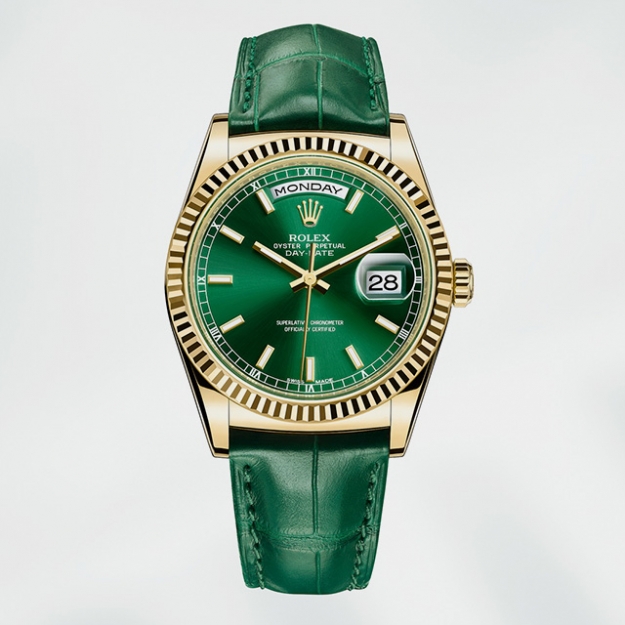 В этом году Rolex продемонстрировал новую коллекцию нестареющих Oyster Perpetual Day-Date из золота с водонепроницаемым корпусом, сверхточным калибром 3155 и ремешками из кожи миссисипского аллигатора.