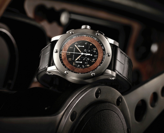 Официально модель Sporting Automotive Chronograph будет представлена на женевской выставке SIHH-2015, которая пройдет с 19 по 23 января будущего года, но уже сейчас стали известны подробности новинки. Благородный дизайн, навеянный старинным купе Bugatti Type 57SC Atlantic coupe 1938 года из легендарной автомобильной коллекции Ральфа Лорена, украшает круглый корпус из нержавеющей стали диаметром 44,8 мм. Под сапфировым антибликовым стеклом покоится черный циферблат с арабскими цифрами, часовой и минутной стрелками, покрытых люминесцентным составом SuperLuminova бежевого цвета. Периферийная часть циферблата изготовлена из вяза, идентичного отделке приборных панелей автомобилей Bugatti.