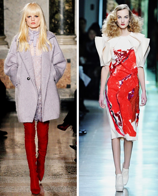 "Дела в доме Bottega Veneta сейчас идут хорошо: прибыль в 2012 году преодолела отметку в $1 млрд, и прекрасная осенне-зимняя коллекция Томаса Майера даст продажам еще больший толчок", — так начали рецензию на Women's Wear Daily. И правда, коллекция получилась красивой, в духе обожаемых дизайнерами 40-х. Яркие пальто с четкой линией плеч и выделенной талией, женственные платья-футляры, шелковые топы и брюки с высокой талией показывали модели с прическами в стиле 70-х — пушистыми кудрями, уложенными на косой пробор. Сильной стороной коллекции была архитектурность кроя, которой Майер добился благодаря умелому использованию тканей, наслоению фланели и шерсти на талии юбок и плечи жакетов. В этой структурности образов и было то "чувство контроля", которым запомнилась его коллекция.