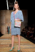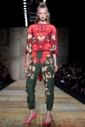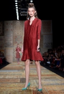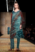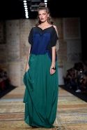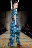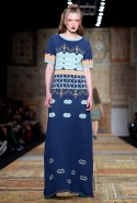 Принты в духе щедро украшенных боярских одеяний, графичные наряды с узором, напоминающим петушиный гребень и платья в восточном стиле, как у Шамаханской царицы, — Ахмадуллина развивала в коллекции сразу несколько тем.
