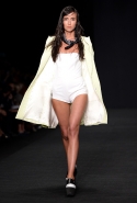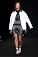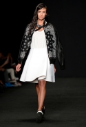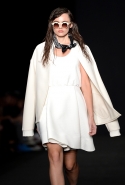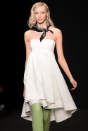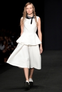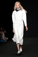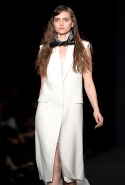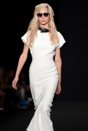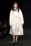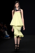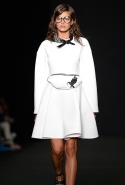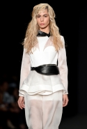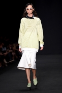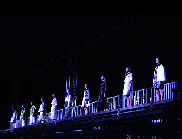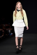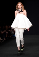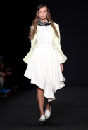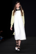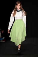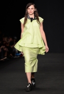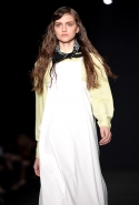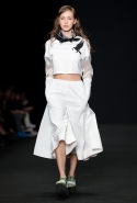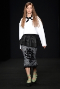 Топы с баской, широкие юбки А-силуэта, просторные сарафаны и струящиеся платья в пол — вещи получились очень воздушными и объемными. Это была коллекция, сделанная в буквальном смысле слова с размахом. Наряды словно устремлялись вверх, а усиливал иллюзию "полета" символ коллекции — нарисованный орел с крестом в клюве.