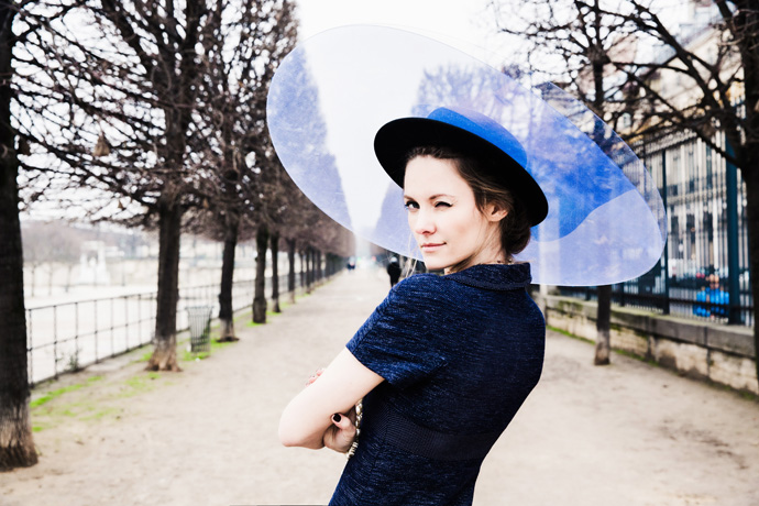 Не скрою, прежде чем в ней выйти, я решила примерить на себя образ Каролин Мерфи из известной фотосъемки для французского Vogue Хельмута Ньютона. 10-минутная сессия "без порток, но в шляпе" для семейного архива прошла более чем успешно. Мой проход от лифта до выхода по лобби отеля Le Meurice длился пару минут, но тогда-то я и поняла, что это был вызов. Вызов всем дамам, наслаждавшимся afternoon tea, входной двери-вертушке, так как я не поместилась туда и мне, как д'Артаньяну, пришлось снять шляпу. Потом был вызов ветру, когда я, словно Мэри Поппинс, чуть не взлетела над садом Тюильри. А что, была бы неплохая телепортация с показа Valentino на Elie Saab без пробок.