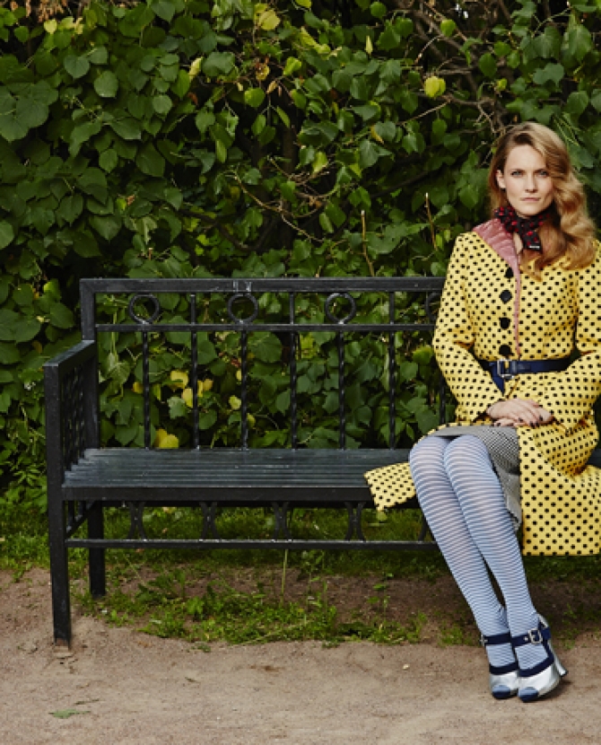 Но есть на свете такие вещи, которые невозможно не купить, даже если ты не собираешься их носить. Это как картина Сезанна – если вдруг встретилась на пути и есть нужная сумма, надо брать. Желтое пальто в горох от Miu Miu – это как раз тот самый Сезанн: его можно будет оставить в наследство внучке вместе с брошкой Van Cleef & Arpels и теннисным браслетом Cartier. Как сказала об этом пальто моя дочка: "Очень ретро и очень смело". Ретро – не ретро, а горох, кажется, был всегда. Вот и Кейт Миддлтон не просто так появилась с новорожденным принцем Джорджем в нежно-голубом платье в горох, повторив платье Дианы, в котором принцесса показала миру маленького Уильяма.