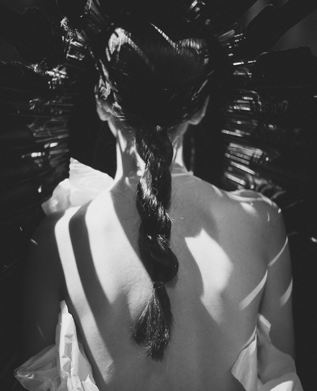 Дизайнер воссоздал на презентации атмосферу строящейся музейной экспозиции. Модели позируют на фоне ящиков для перевозки грузов, вместо платьев на многих из них бумага и упаковочная лента с логотипом авиакомпании. Тяжелые головные уборы, сделанные из натуральных камней, рогов и перьев, выглядят в таком антураже особенно впечатляюще.