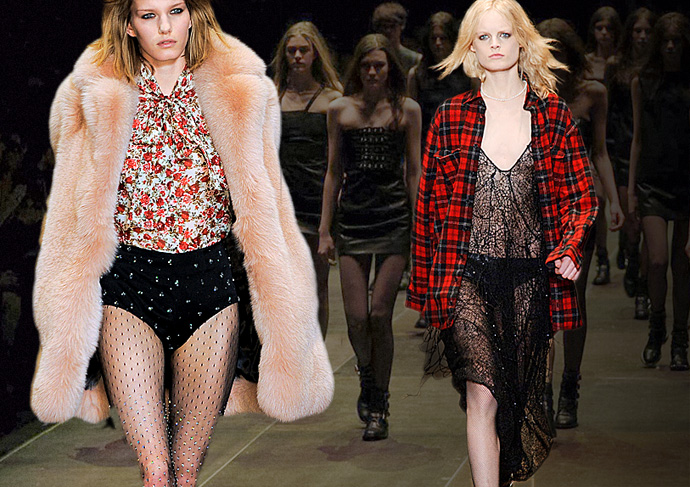 (Из Twitter) Saint Laurent: Ностальгия по эре фланелевых костюмов, как у Курта Кобейна, и блестящих колготок, которые носили девочки из команды поддержки в моем университете.