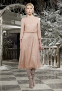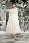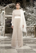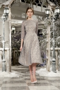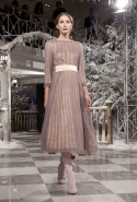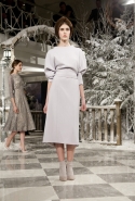 Для воплощения идеи сказки, дизайнер использовала светлые и теплые тона: бежевый, молочный, светло-серый, жемчужный. Даже черный цвет был "смягчен" принтом морозного узора. Оренбургский платок, как никогда, гармонично смотрелся в коллекции и передавал ту иллюзию морозных узоров, воздушной красоты и в тоже время согревающей легкости, которая ассоциируется со сказочной Снегурочкой. Мех дизайнер использовала как в деталях для отделки, так и в полноценных элементах образа в виде каракулевых шапок и пальто.