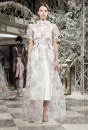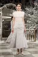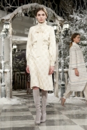 В новой коллекции Анастасия Романцова представила героиню романа Бориса Пастернака "Доктор Живаго" Лару в образе Снегурочки. У дизайнера получился сборный образ загадочной русской девушки, завораживающий своей женственностью, красотой и изяществом. Ключевое определение тут, конечно, — русской. Оренбургские платки, натуральный мех, цветочные узоры и косынки — все то, что так любят иностранцы в русских образах, и, что последнее время снова становится остро актуальным на родине.