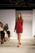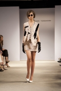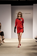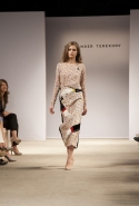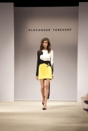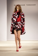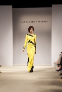 Коллекции Александра Терехова всегда характеризует обширность задействованных в них тематик: в прошлом сезоне это были усыпанные гвоздикой, "деревенские" сарафаны из хлопка и кокетливые платья в крупный горох, а сезоном раньше — образ актрисы и иконы 50-х Грейс Келли.