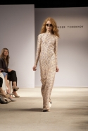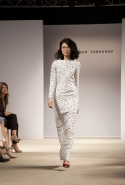 Выбор дизайнера пал на сюрреализм: шелковые платья были расписаны текстом из романа Михаила Булгакова "Мастер и Маргарита", а нашитые на жакеты изображения кистей рук вызывали в памяти творения Эльзы Скьяпарелли. Пожалуй, с одной только разницей, что у Эльзы Скьяпарелли сюрреализм был чистым и неразбавленным, поддержанным Сальвадором Дали и Жаном Кокто, а у Александра Терехова — молодежным, смешанным со спортивной уличной модой. Ее посланники — шелковые бомберы с трикотажными манжетами и толстовки из жаккарда, которые легко можно набросить на длинное вечернее платье, если на улице вдруг похолодает.