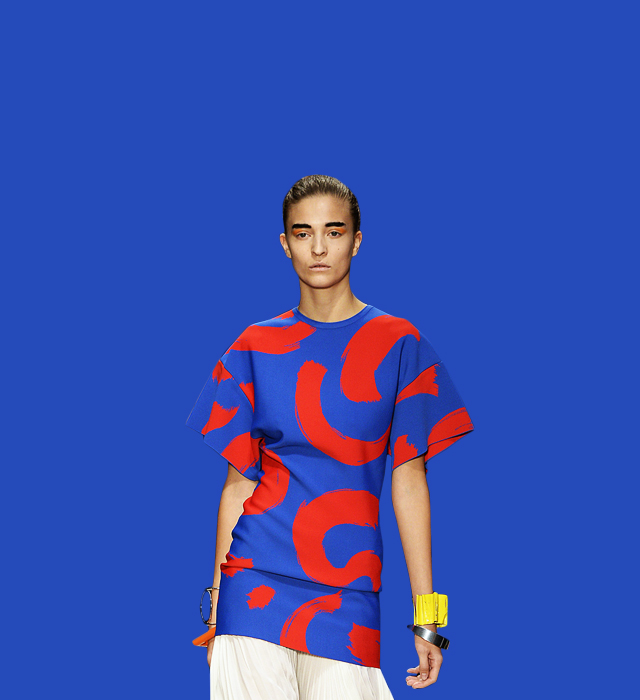 Во всем этом, конечно, был и challenge и fun, но все-таки, несмотря на все это буйство глаз и половодье чувств, невольно останавливаешься прежде всего не на рисковых цветосочетаниях и сложно скомбинированных ансамблях, где пятница выглядывает из-под субботы, а на парочке суровых луков в стиле старой доброй Фиби. Например, на гладкой черной туники без рукавов такой же узкой белой юбке с широким черным воланом внизу или объемном жестком черном пиджаке с белой прозрачной юбкой. Все-таки именно в этом с Файло мало кто может сравниться — а вот делать психоделические принты сейчас научились все кому не лень. Впрочем, Фиби Файло настолько важный дизайнер для моды последних лет, что может позволить себе резвиться как угодно. И в одном можно не сомневаться – весь этот ее постмодерн сметут с прилавков практически со скоростью света.