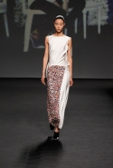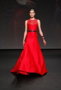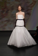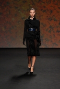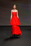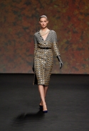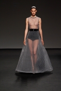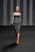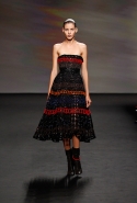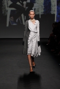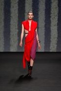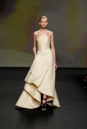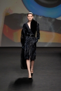 Были и совершенно радикальные вещи, со сложными драпировками и вставками, как, например, платье из двух сложнопереплетенных полотен ткани, алого и фуксии в клетку "куриная лапка", перехваченного тонким черным поясом, — и на тему "штор" тут же все бросились острить в твиттере и фейсбуке. Были и такие, которые напоминали о выпускных коллекциях в дизайнерских школах, — как, например, белое шелковое платье с неровным трехслойным подолом, к одному плечу которого было словно пристегнуто с помощью множества пуговиц серое фланелевое. И оно смотрелось подчеркнуто странно в одной коллекции с роскошным буржуазным черным пальто из каракульчи с лисьим боа. Но каждая была подчеркнуто, даже избыточно, сложной — прихотливого кроя, составленной из множества деталей, с причудливой комбинацией фактур, с подчеркнуто продуманной спиной. Убедительное и вместе с тем очень современное воплощение самой идеи кутюра — сложной и кропотливой ручной работы.