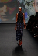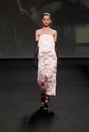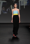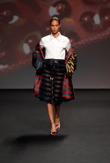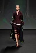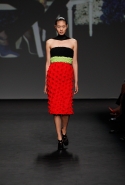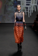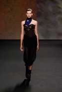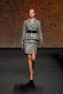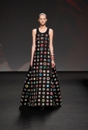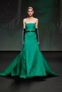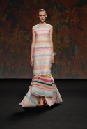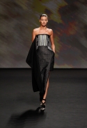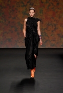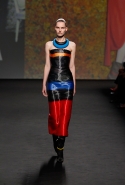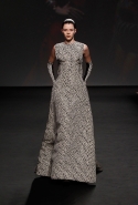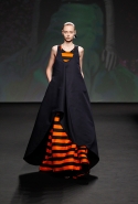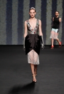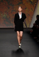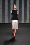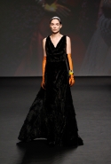 Впрочем, нам показали несколько классических бальных платьев в пол, — красное, зеленое, цвета шампанского, белое, в черную крапинку, черно-оранжевое полосатое с черной накидкой и черное меховое. Надо же Дженнифер Лоуренс и Марион Котияр в чем-то появляться на красных дорожках! Впрочем, сомневаюсь, что кто-нибудь из девушек отважится на меховое. Все они — и многие другие выходы — сопровождались высокими перчатками, составленными из кусков разного цвета и фактуры, которые на первый взгляд выглядели классикой 50-х, но на самом деле тоже отсылали к 90-м. Вообще всю коллекцию можно было бы озаглавить "Безумный пэчворк", если бы в ней не отсутствовал напрочь флер хиппи и вообще всего рустикального, с чем обычно пэчворк ассоциируется.