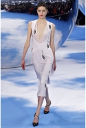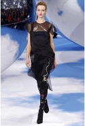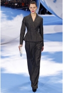 Симонс берет основной диоровский силуэт и так закручивает его, так смещает пропорции, что основательно примелькавшийся за последнее время new look начинает выглядеть самым свежим и даже радикальным образом. На этот раз в классическом диоровском платье с декольте, пышной юбкой и турнюром вышла Кэтрин Макнил — но сшито оно было из черной кожи и выглядело сурово и готично. Все прочие элементы его стиля — идеально скроенные приталенные жакеты и пальто, узкие черные брюки, сложно задрапированные юбки платьев-бюстье — работали по такому же принципу.