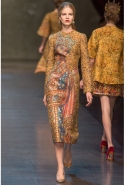 Показ новой коллекции итальянского дуэта принес две новости — плохую и хорошую. Начнем с плохой: Доменико Дольче и Стефано Габбана вновь подтвердили свою предсказуемость, продемонстрировав очередную поражающую роскошью и блеском фантазию на итальянскую тему. На этот раз отправной точкой для коллекции послужили мозаики, украшения и церковная утварь в византийском духе, отсылающие к убранству знаменитых раннехристианских базилик Равенны. Не обошлось, конечно, и без излюбленного дизайнерами образа одетой в кружева сицилийской красавицы. Хорошая новость — в коллекции было представлено множество красивых, не поражающих ни творческой оригинальностью, ни дизайнерским поиском, а просто безоговорочно красивых и женственных вещей.