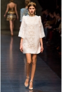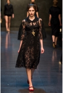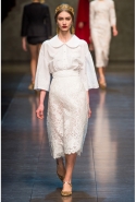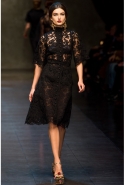 А вот "неисторическая" часть коллекции порадовала многочисленными элегантными силуэтами, мягкими черными и серыми буклированными тканями, мелкой костюмной клеткой и духом римской классики 1950-1960-х годов, знакомым нам по черно-белым лентам итальянского неореализма. Изящные приталенные и трапециевидные пальто с широкими рукавами, короткие пиджаки с закругленной горловиной, узкие тайеры и юбки-миди очень изящны и вместе с тем практичны. "Сицилийская" же тема подарила нам изумительные чувственные и роскошные черные кружевные наряды и нежные ансамбли с юбками и блузами и романтичные мини-платья из белого кружева.