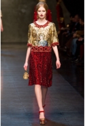 Серия платьев и пальто оттенков граната и рубина, с вышивками, кружевными деталями и инкрустациями, стала своеобразной связующей нитью между Византией и Сицилией. Роскошь, богатство, блеск, величие — по крайней мере в этом итальянский дуэт не обманул наших ожиданий. После первого порыва обвинить его в повторении самого себя приходит следующая, более рассудочная мысль: иногда от моды ожидаешь не глубоких смыслов и новаторских идей, а праздника и фиесты. А Dolce & Gabbana — это праздник, который всегда с нами.