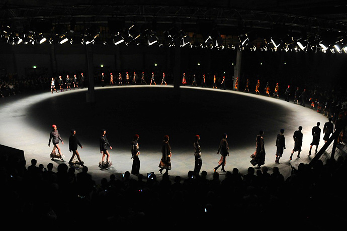 Вчерашний показ Givenchy напомнил шоу Марка Джейкобса, прошедшего две недели назад в Нью-Йорке: модели тоже выходили на круглую арену, как в самом настоящем цирке. Только музыка была совсем не цирковая — тягучая и ностальгичная композиция You Are My Sister, записанная коллективом Anthony & The Johnsons в 2005 году и на шоу прозвучавшая под аккомпанемент оркестра.