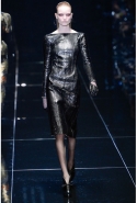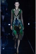Работая в этой новой "манере", Фрида Джаннини демонстрирует явное знание вопроса. Новая коллекция Gucci — это очевидный набор удачных, с огромными коммерческими перспективами, хитов. Костюмы с юбкой и пальто "шестидесятнических" силуэтов с покатыми плечами, приталенные платья из шерстяного крепа идеально вписываются в повседневный гардероб. Эффектный цвет — земляничный, темно-оранжевый, оливковые и голубые тона, материалы с легким блеском, опущенная линия плеч и более глубокая, по сравнению с классическим вариантом, линия декольте позволили дизайнеру сгладить ярко выраженную "традиционность" этих форм и придать им свежесть и даже определенную игривость. Отдельная тема — вышивка на рукавах пальто и коктейльные платья из парчи с восточным орнаментом. Уже ставшая общим местом "дань" китайскому рынку? Как бы то ни было, смотрится это очень красиво и вполне "носибельно" даже в северных широтах.