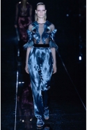 А вот кожаные платья и тайеры с пластикой, напомнившей модели Тьери Мюглера 1980-х годов, и вечерние наряды коллекции вернули нам привычную Фриду Джанини — чувственную, сексапильную, энергичную, безоговорочно уверенную в себе. Облегающая тело сетка, отделка из перьев ярких сочных оттенков и низ из струящегося атласа — беспроигрышный рецепт для многообещающего вечера. Некоторые из платьев и брючных ансамблей были отделаны роскошной вышивкой из пайеток. В общем, гламур во всей своей красе. Среди моря рассудочного прагматизма капля праздника и безудержной роскоши никогда не помешает!