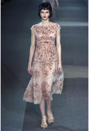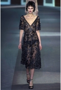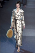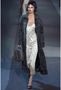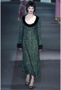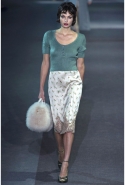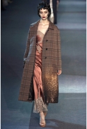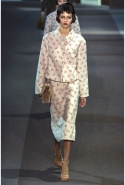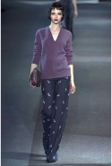 Героине новой коллекции Марка Джейкобса присуща нарочитая небрежность — она может собраться в номере второпях и выбежать из него в одной только ночной сорочке или пижаме, накинув сверху легкое пальто и захватив с собой меховую сумочку. Но даже так, в шубе и нижнем белье, кашемировом боди или пальто на голое тело, она выглядит привлекательной. Кстати, с ироничными остроносыми туфлями на низком каблучке покончено — в новом сезоне клиентки Louis Vuitton снова перейдут на открытые босоножки на тонком ремешке и высокой шпильке. Предводительницей всех любовниц стала Кейт Мосс, которая прошла по кругу в гордом одиночестве, демонстрируя полупрозрачное платье в пол с цветочной вышивкой и полное отсутствие украшений.