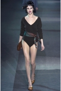 Образ женщины, замешанной в недозволенном романе, у Марка Джейкобса получился. Короткие черные парики, яркие, словно зацелованные губы, чуть смазанный макияж, обязательный педикюр вызывающего черного цвета — вот как выглядит "бедная богатая девочка" в исполнении Марка Джейкобса. Она же — "сильная слабая девочка", попавшая в любовную ловушку и пытающаяся выбраться из нее, но ощущающая свое бессилие и потому возвращающаяся назад.