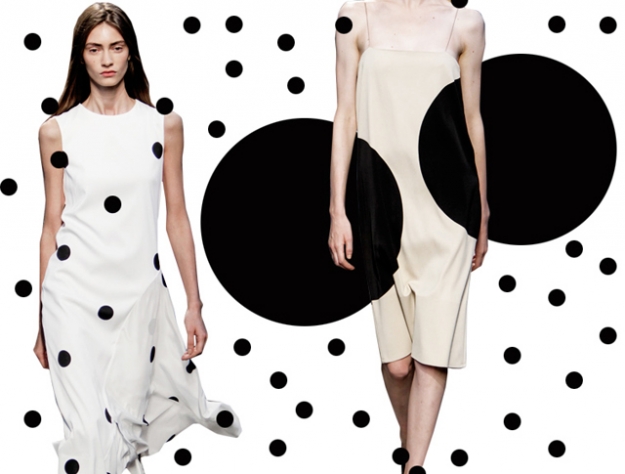 Piselli, pois, polka dot, горошек — как вам больше нравится. Маленькие горошины, расставленные по ткани едва ли не с математической точностью, или большие, увеличенные в сто, двести или даже тысячу раз, — такого размера, что на одно платье поместится только одна или даже ее половина. Смотреть показ предлагаем как коллекцию диапозитивов, следя за движением горошин на поверхностях платьев, юбок и топов.
