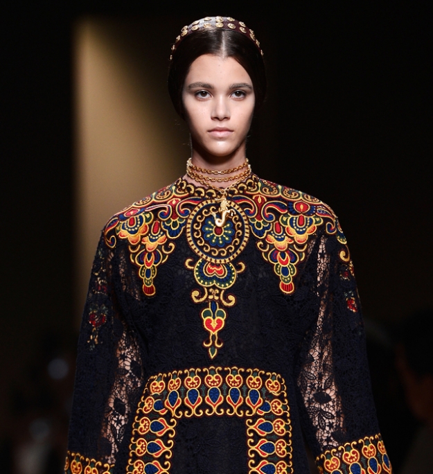Темой коллекции стал Ближний восток, которому массово отдали предпочтение французские модные дома и интернациональные участники недели моды в Париже. Эстетика северо-африканского костюма в целом и марокканского в частности — благодатная почва для дизайнеров, в том числе и для дизайнеров Valentino. Она располагает и к использованию роскошного филигранного декора, которым славился дом, и великолепных набивных тканей. Но итальянские дизайнеры, как известно, любят обращаться в своих коллекциях к архитектурным мотивам. Новая коллекция не стала исключением — архитектура северной Африки очень декоративна, богата на эффектные цветовые решения и не лишена утонченности.