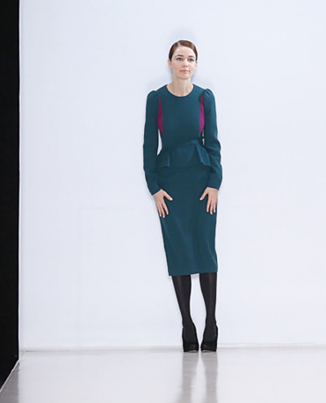 Узкие платья-футляры из прошлых коллекций сменились широкими юбками в сочетании с приталенными топами из тонкой шерсти. Однако поднадоевшим баскам и юбкам-карандашам тоже нашлось место.
