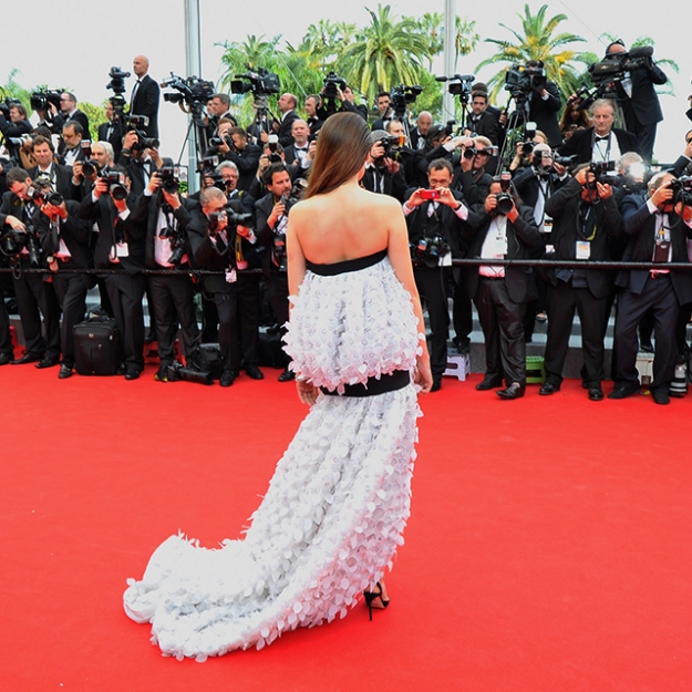 Вчера на каннской красной дорожке было все, к чему мы уже давно привыкли: много кружевной пены, стразы, стеклярус, кабошоны и пайетки, что-то лохматое, что-то пушистое, шлейфы, много светлого шелка и черно-белого, которое сейчас так популярно. И знаете что? Все это смотрелось чрезвычайно уныло и однообразно — почти до полного неразличения.